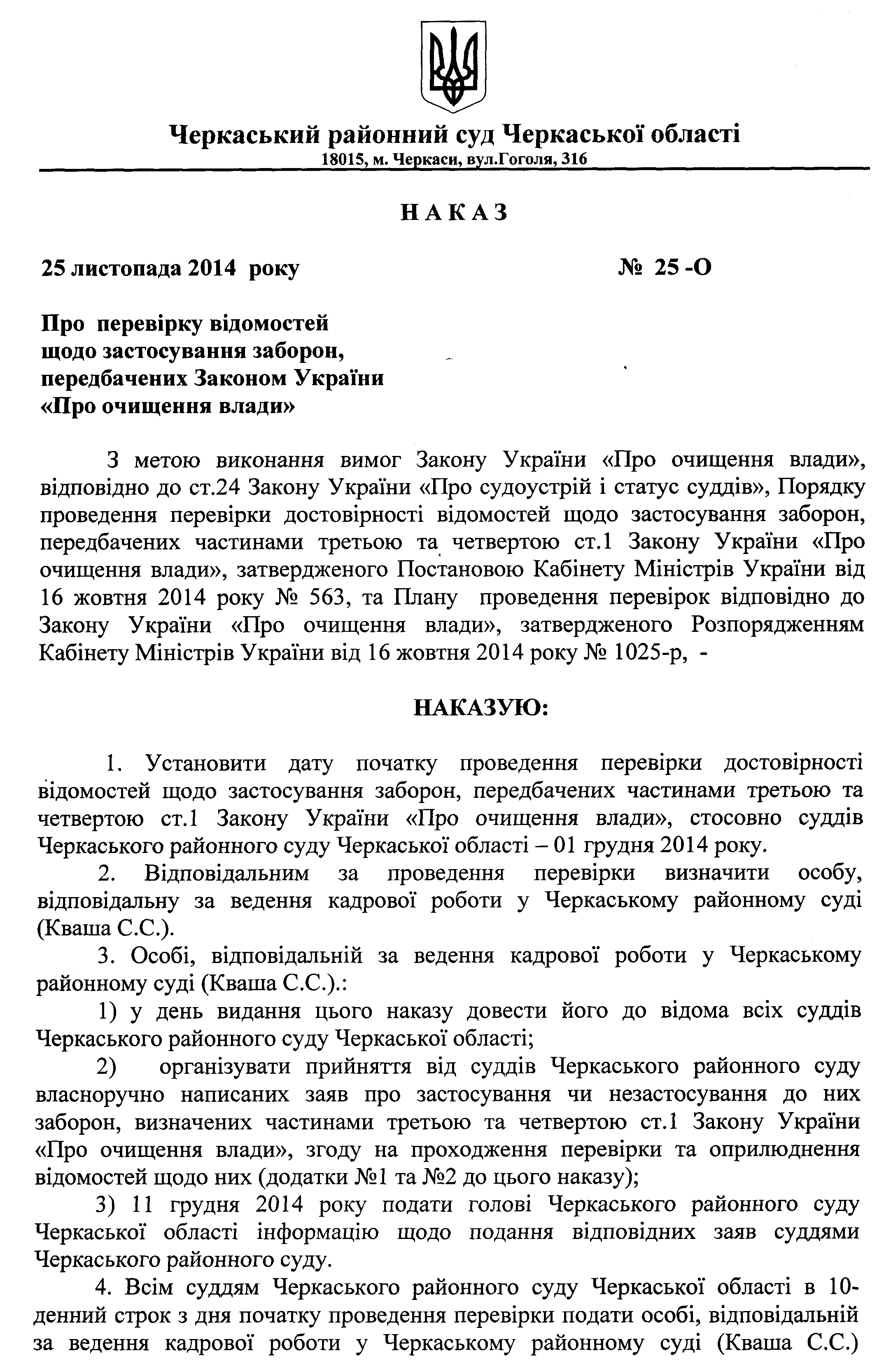 Інформація щодо виконання вимог Закону України "Про очищення влади"